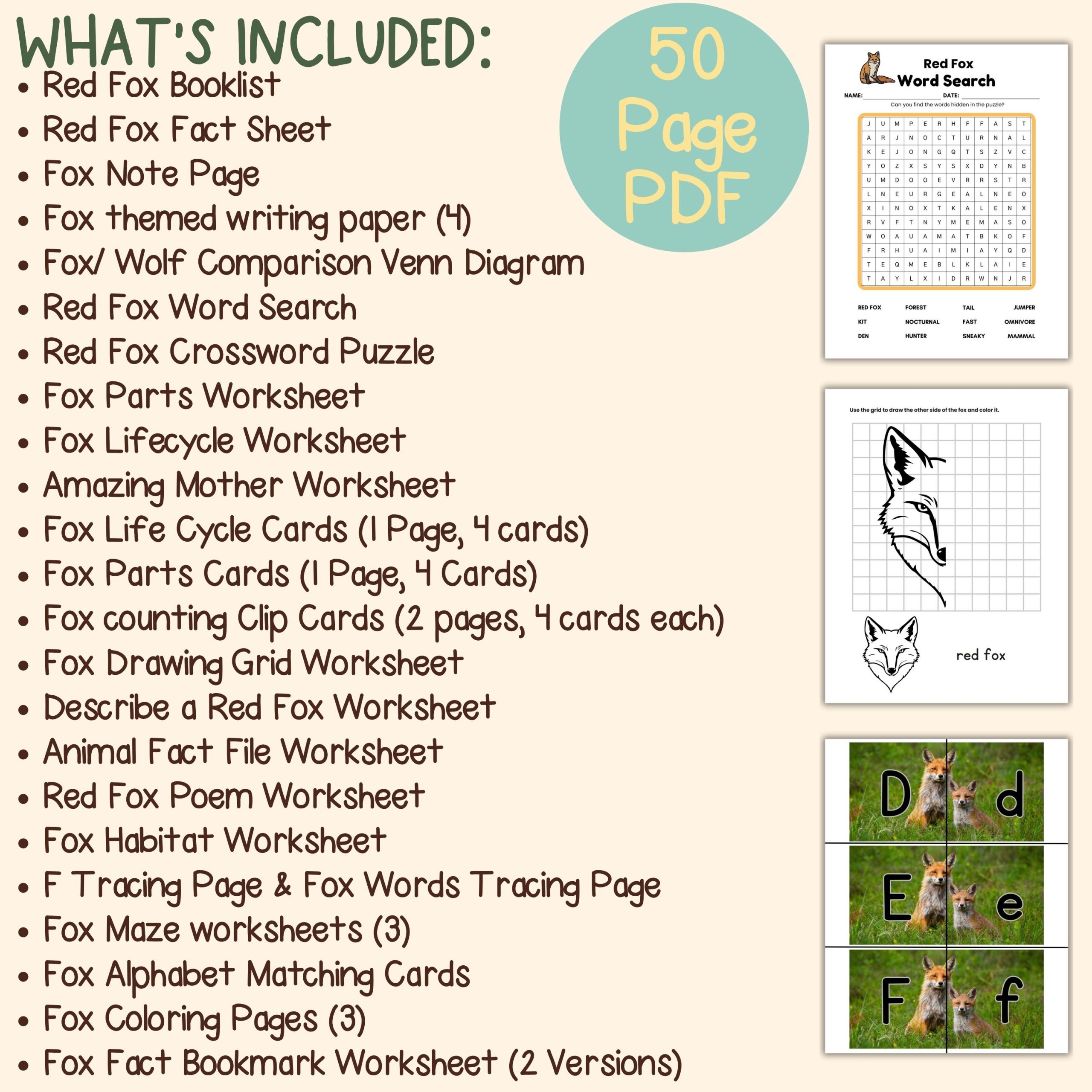 Learn all about Red Foxes as a family with this multi-subject worksheet bundle!