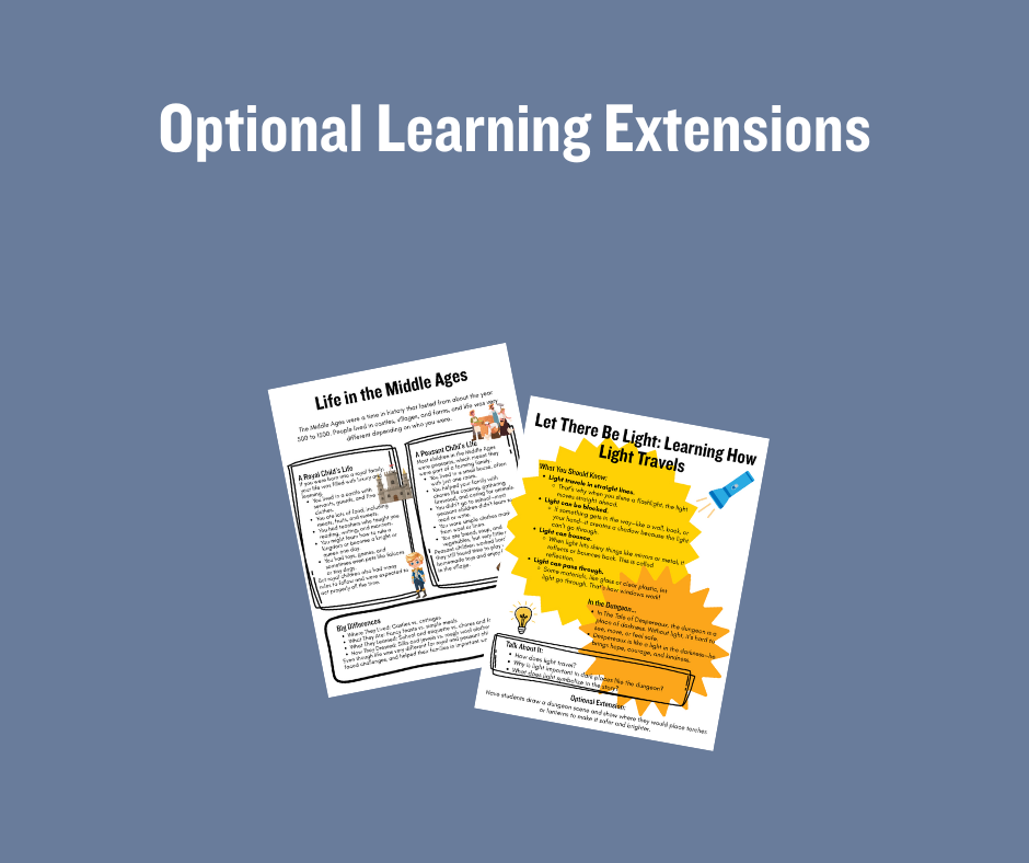 π§ͺ STEM & History Extensions β Explore curious connections like castle architecture, light and sound science, medieval life, and more.